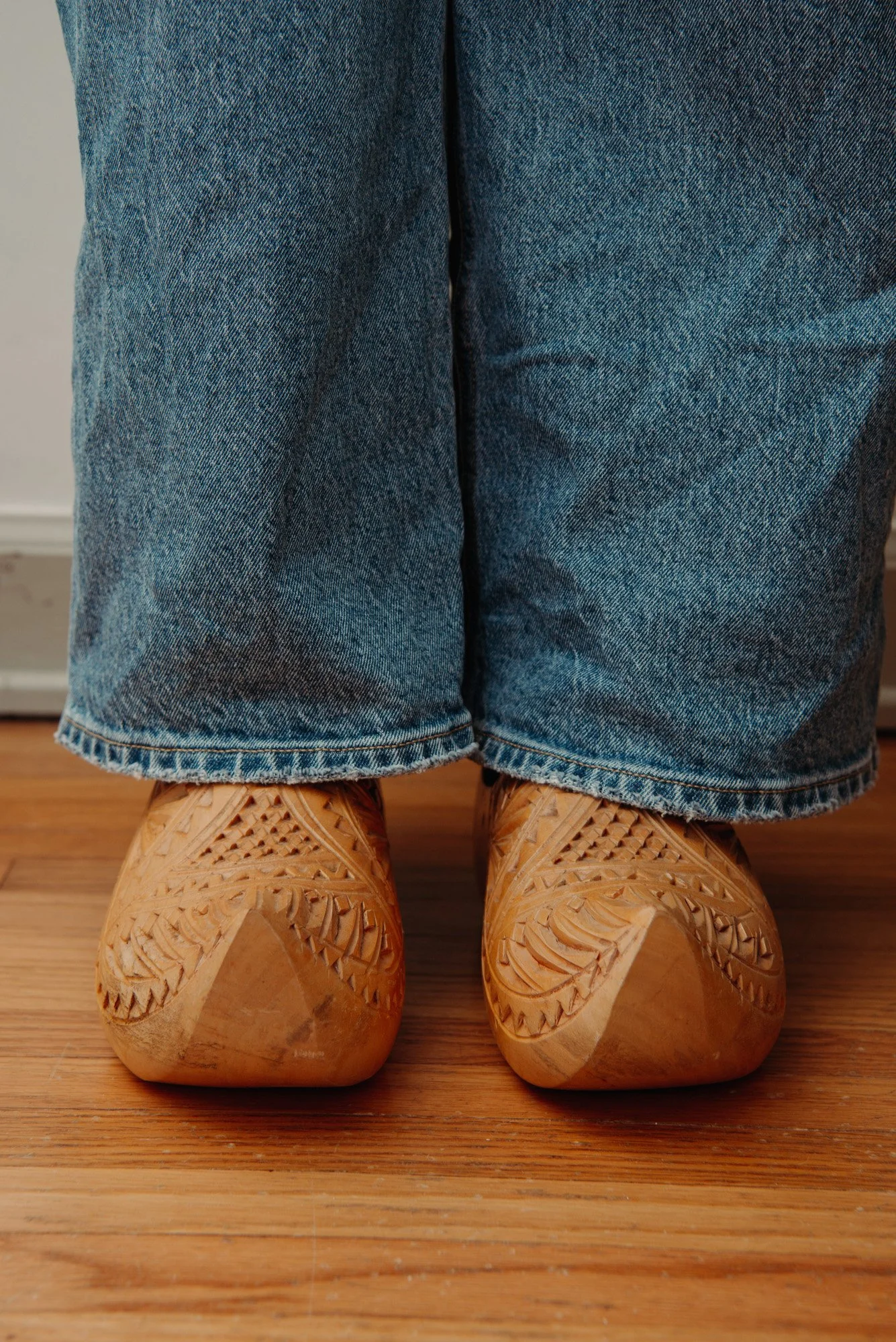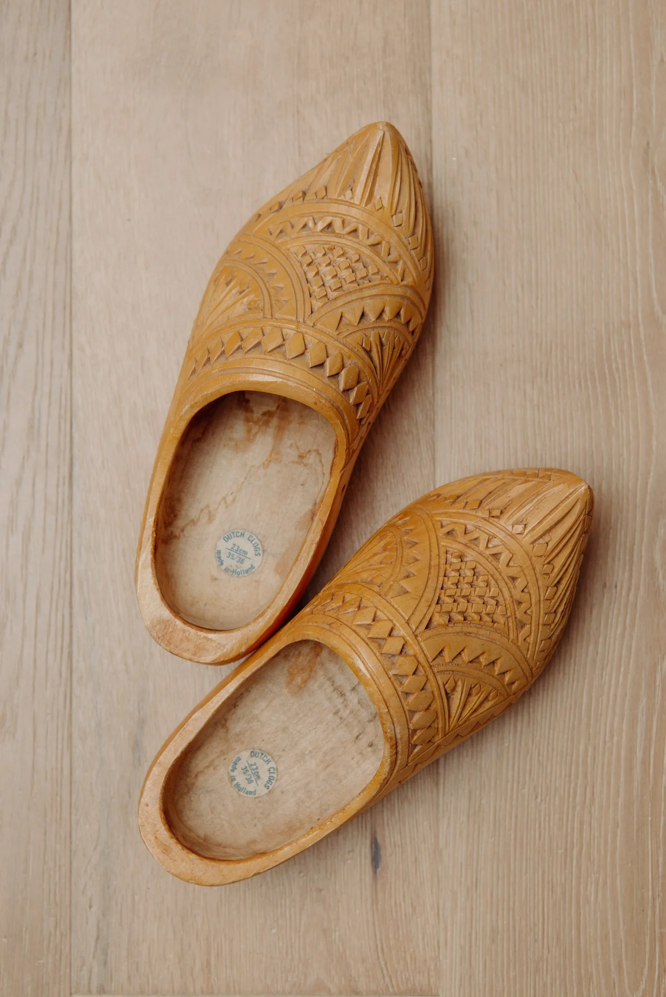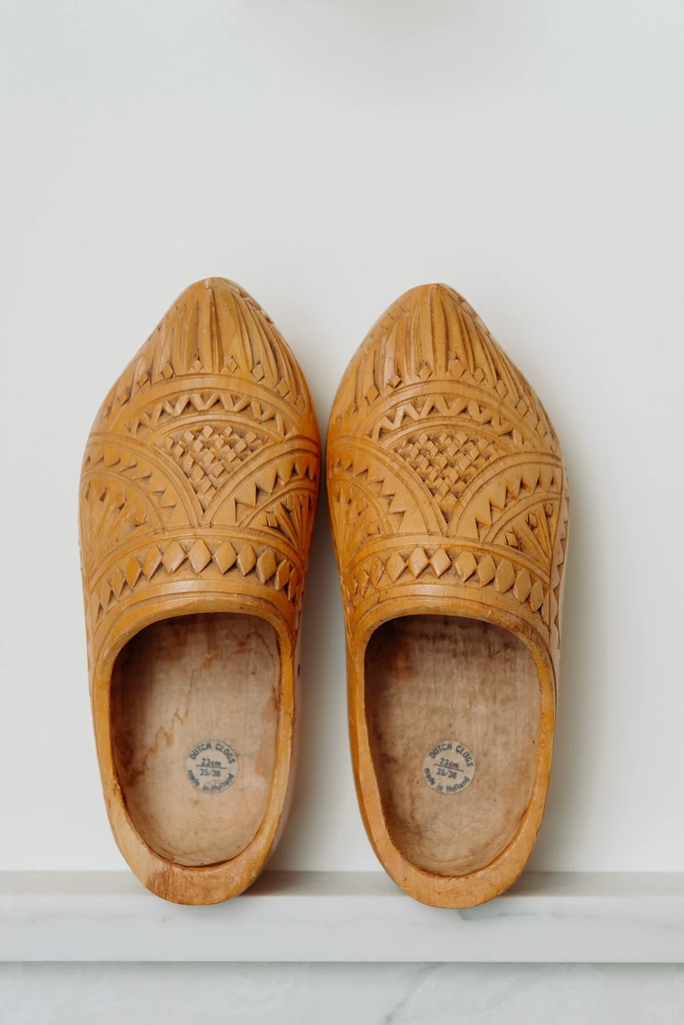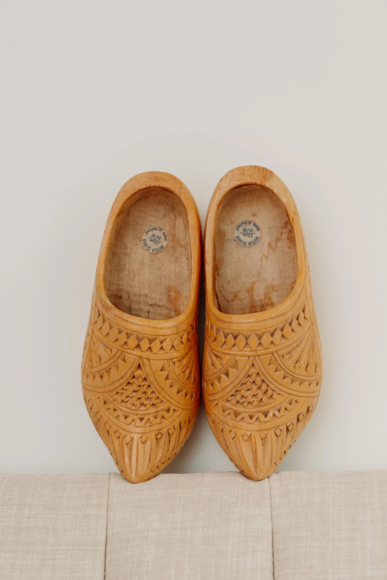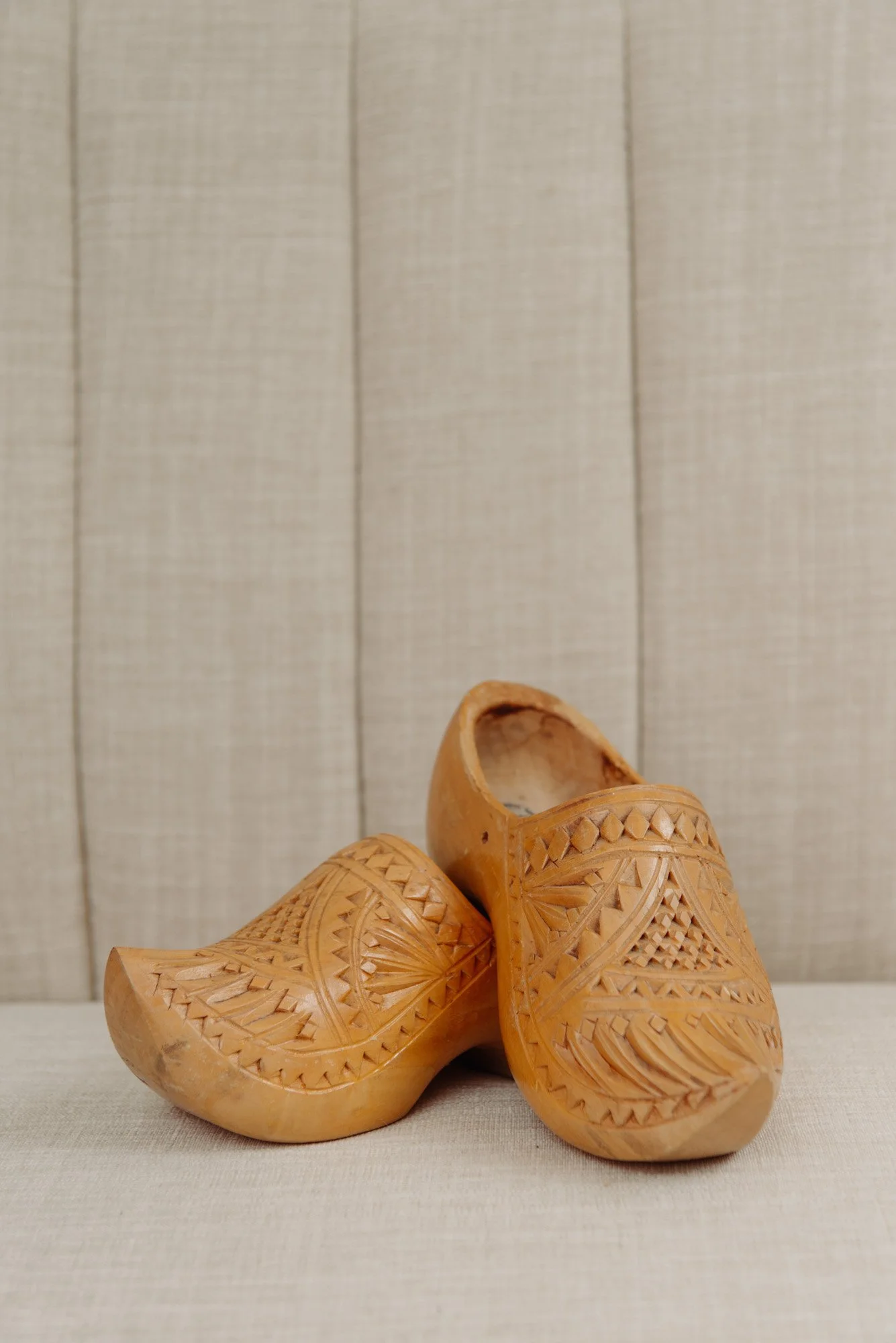 This intricately carved pair of vintage wooden Dutch clogs brings both tradition and artistry to your home. With rich patterning, a warm honey-toned finish, and softly worn interiors, they’re a stunning representation of European folk craftsmanship. Whether styled on a shelf, tucked under a bench, or hung on the wall, they evoke old-world charm and the grounded beauty of everyday objects made with care.