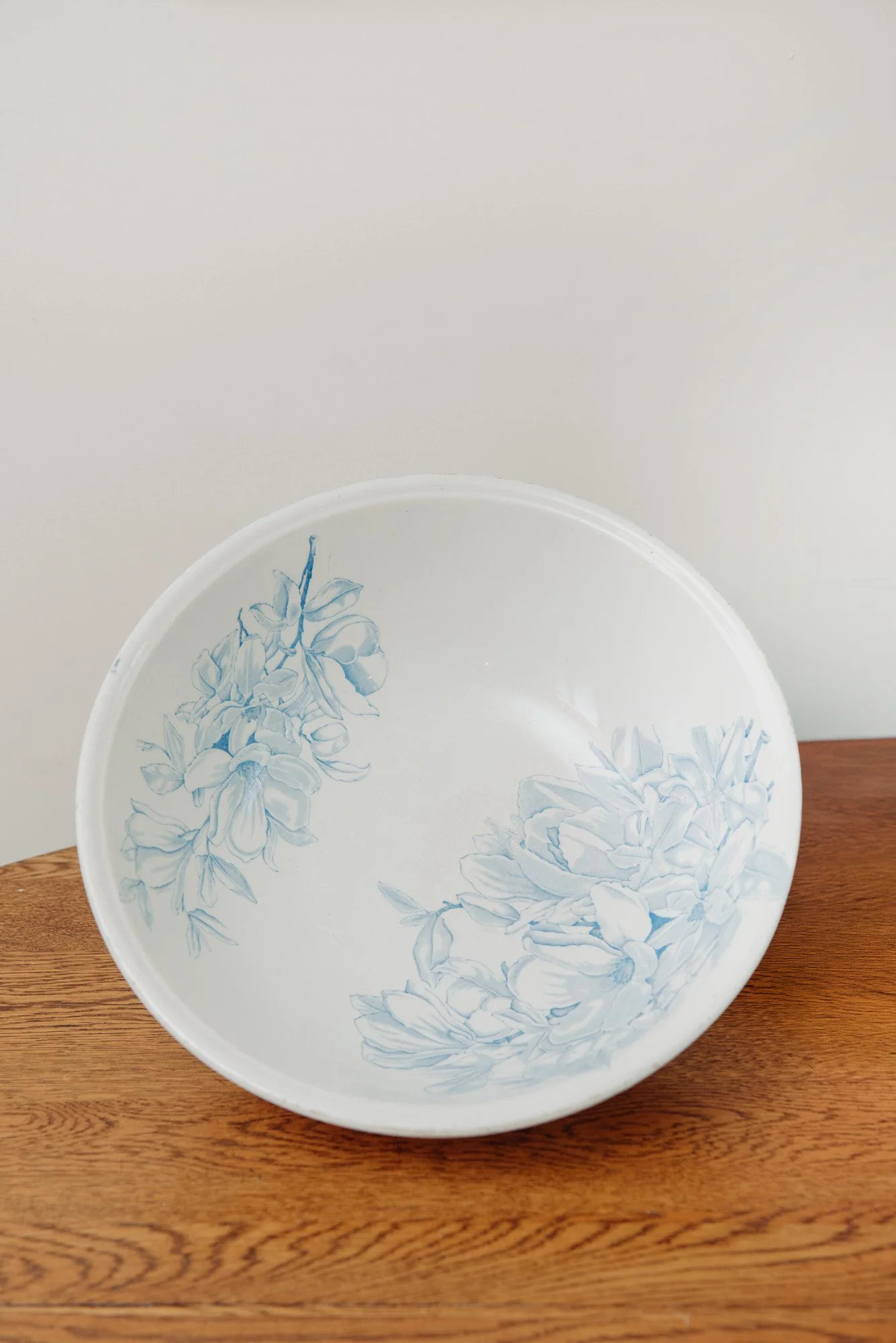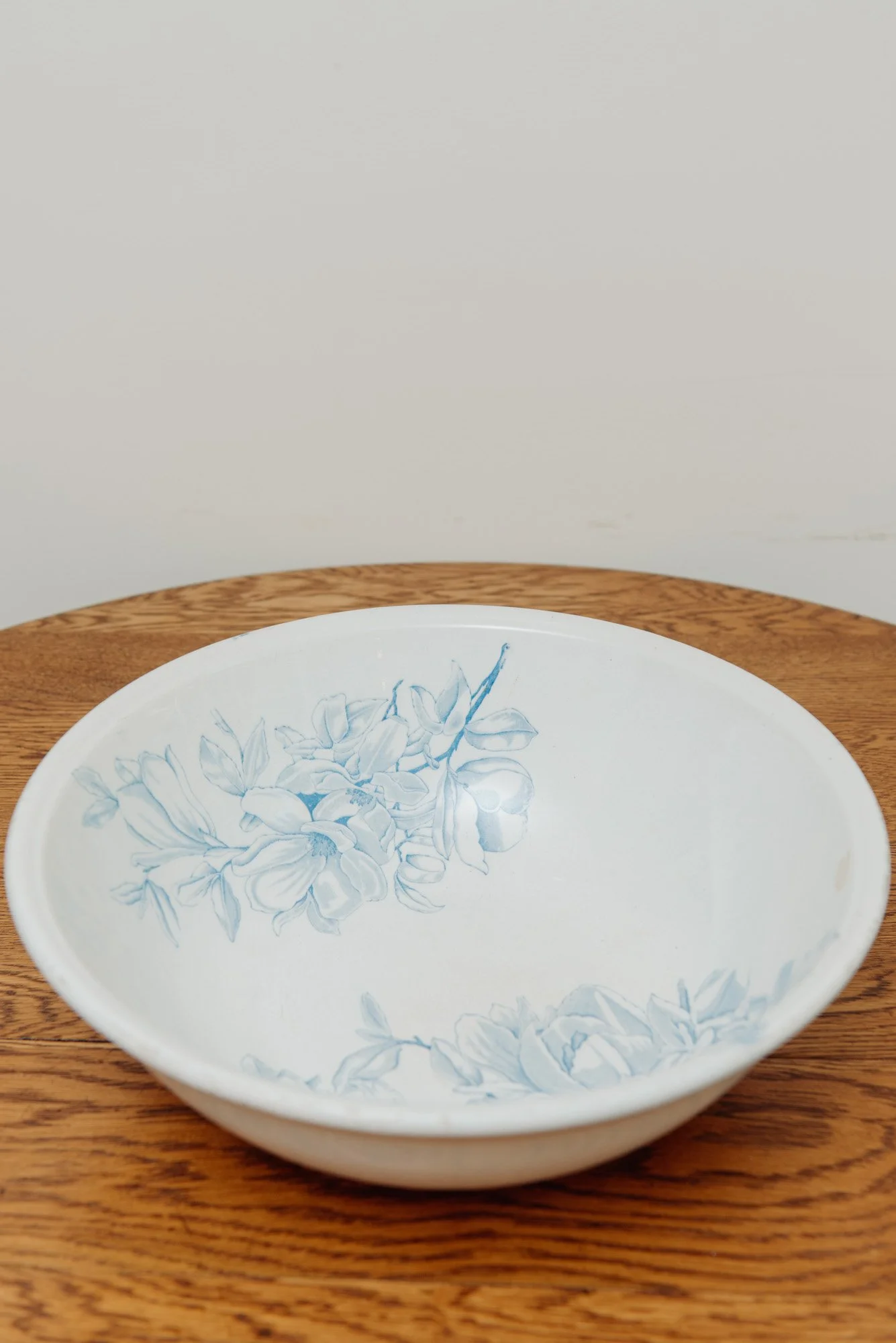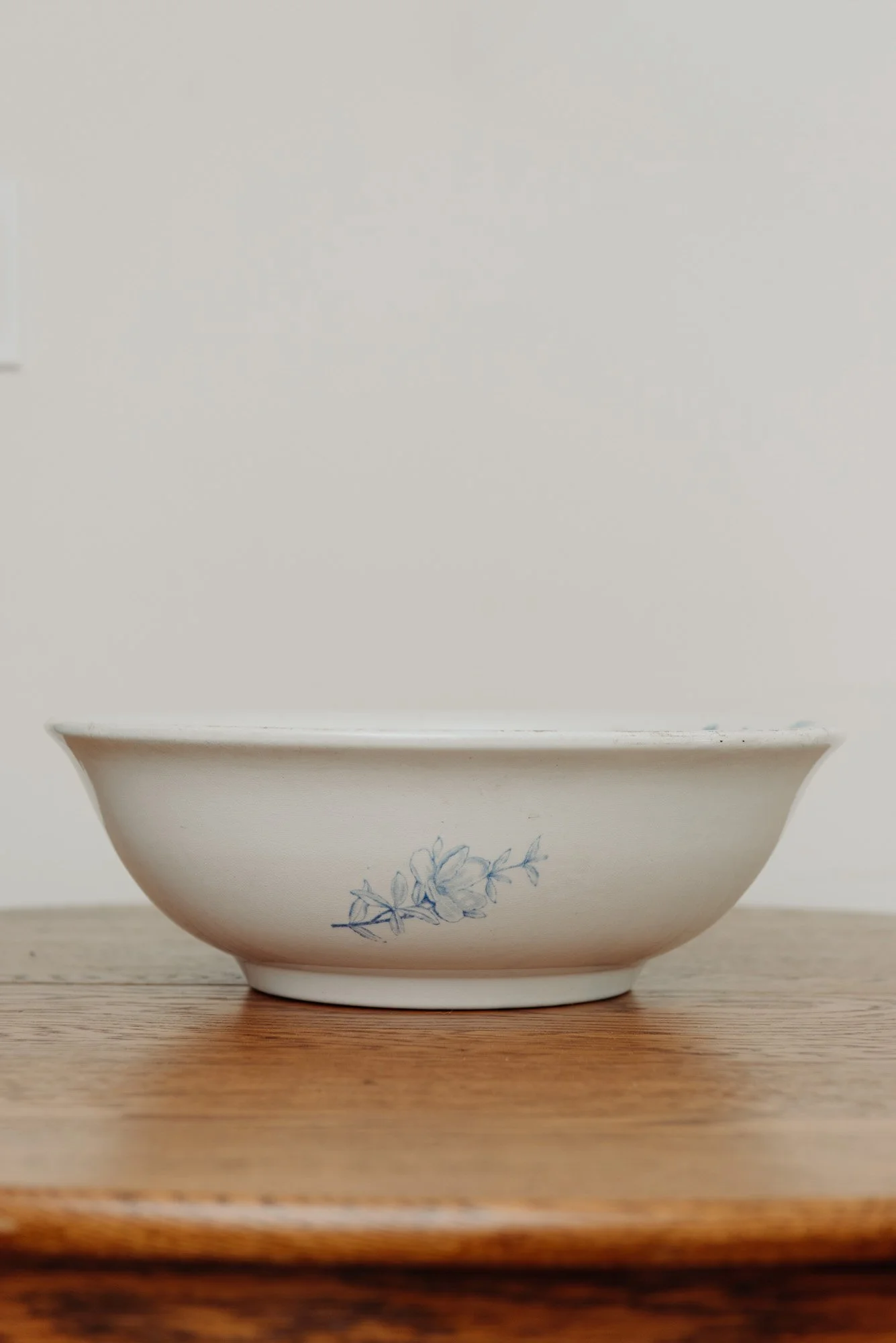This heavy ceramic bowl features delicate hand-painted florals in a soft blue wash — a perfect contrast to its sturdy, grounding weight. Ideal for summer salads, seasonal fruit, or family-style servings, it brings elegance and ease to the table. Whether used daily or reserved for gatherings, it's a timeless addition to the cozy, communal kitchen.